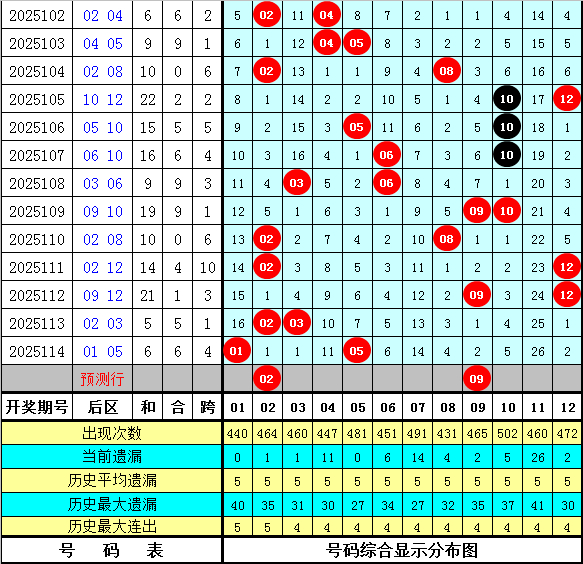 其中,后区奇偶比为16:24,大小比为19:21,012路比为9:16:15,本期后区金胆参考02。