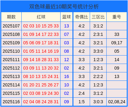 开奖回顾:双色球第2025116期奖号:02、04、08、24、28、31+09。其中奇偶比为1:5,三区比为3:0:3,开出3枚重号02,08,24。